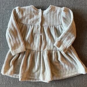 French Connection Baby Dress 3–6M Beige Knit Long Sleeve Floral Cottagecore Boho