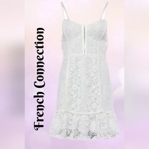 French Connection Binidari Womens White Lace Mini Dress Sz XS=4 Hookeye Front