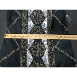 French Connection Black Beaded Sequin Geometric Mini Sheath Dress Size 8