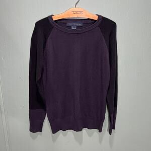 This sleek French Connection raglan sweater combines minimalist design with sophisticated style. Featuring a two-tone colorblock pattern with a slightly darker black on the sleeves and a deep navy/black on the body, creating subtle contrast. The classic crew neckline with ribbed trim offers a timeless silhouette, while the raglan sleeve construction provides comfortable mobility and a sporty-chic aesthetic.