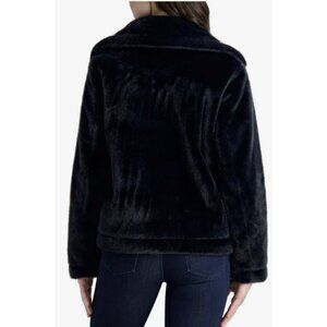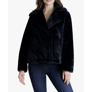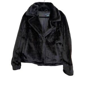 French Connection Black Faux Fur Notched Collar Coat Jacket NEW Large