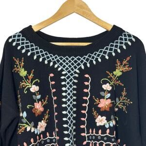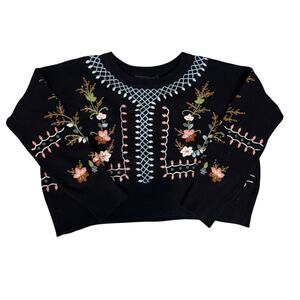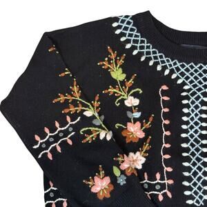 French Connection Black Floral Sweater SMALL Cottage Boho Whimsy Goth Feminine