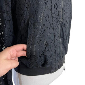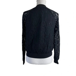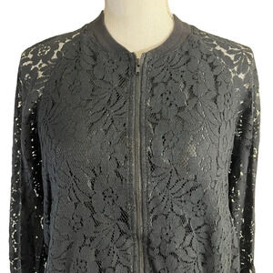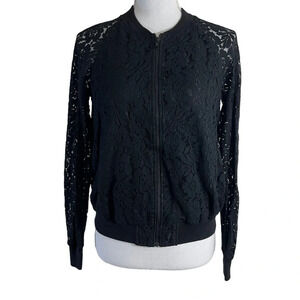 French Connection Black Full Zip Lace Overlay Jacket Size 0 Long Sleeves Pockets