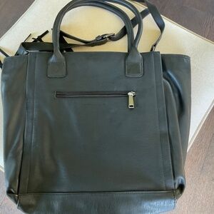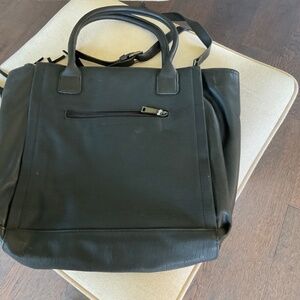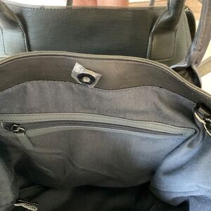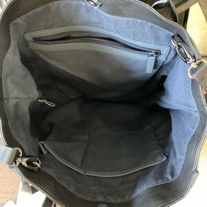 This bag has never been used. Still has protective plastic covering on trim. Adorned beautifully with tassels and grommets. Bag feels like a soft leather, although the interior tag does not say 100% leather!