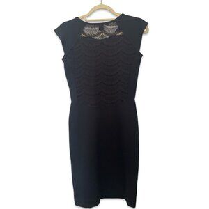 French Connection Black Lace Panel LBD – Size 10 Cocktail Sheath Dress