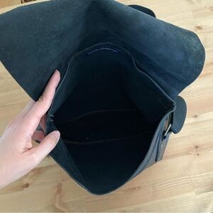 French Connection Black Leather Messenger Bag Adjustable Strap Unisex