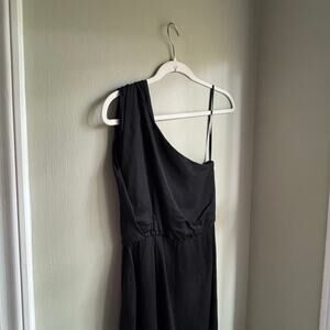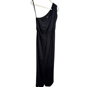 French Connection Black One Shoulder Column Dress Wrap Maxi Viscose Silk Blend