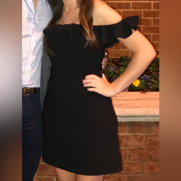 Beautiful black mini dress with ruffle detail. In perfect condition and great for rush, graduation, etc.