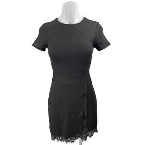French Connection Black Short Sleeve Scalloped Lace Mini Pencil Sheath Dress 2