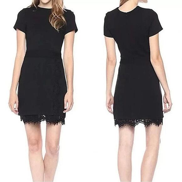 French Connection Black Short Sleeve Scalloped Lace Mini Pencil Sheath Dress 2