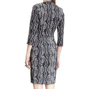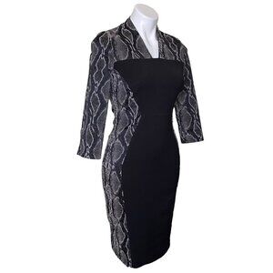 French Connection Black Snake Skin Print Sheath Dress, 3/4-Sleeve Women's Size 6