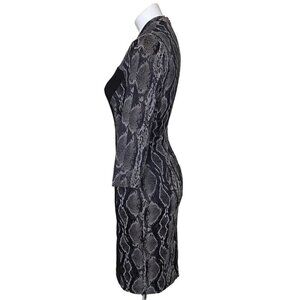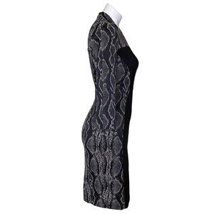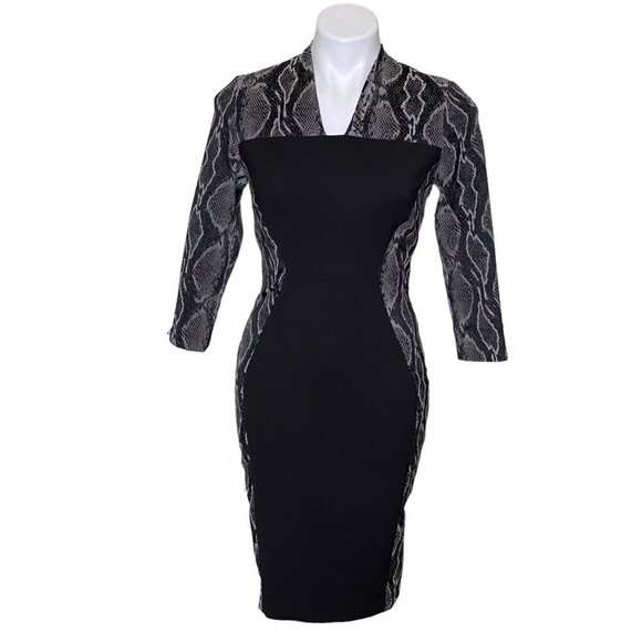 French Connection Black Snake Skin Print Sheath Dress, 3/4-Sleeve Women's Size 6