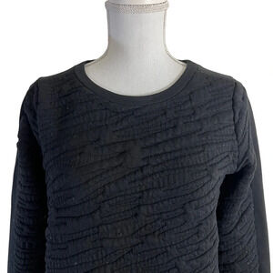 French Connection Black Textured Pullover Crewneck Top Size Small Long Sleeves