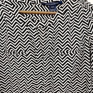 French Connection Black & White Chevron Blouse. Flowy style top, buttons on top in back, functional pockets, excellent preworn condition