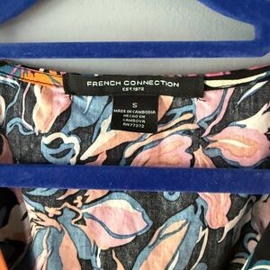 French Connection Black and Pink Floral Midi Dress - Size S