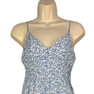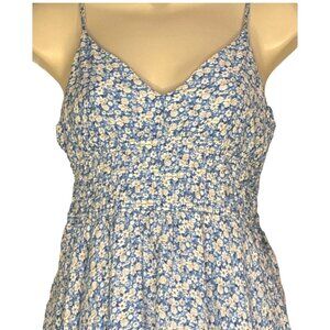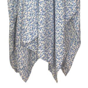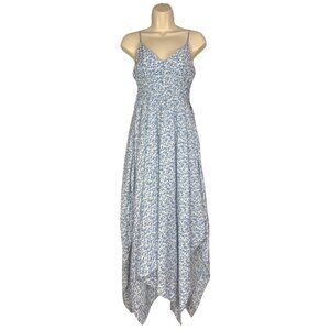 French Connection Blue Floral Maxi Dress Size 0 Summer Boho Handkerchief Hem