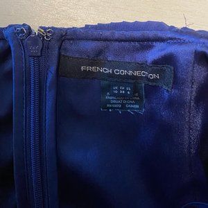 French Connection Blue Pleated Strapless Dress