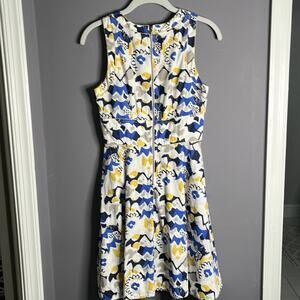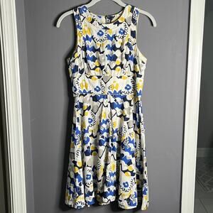 French Connection Blue and Yellow Sleeveless A Line Dress Size 4