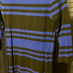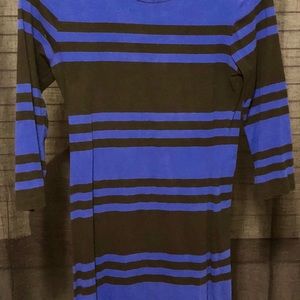 Black and blue stripped bodycon dress! Keyhole closure in back. Mid length sleeves. Perfect with tall boots in the winter months.