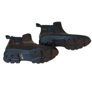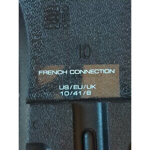The French Connection Bootie Boots in women's size 10 are sleek black patent leather ankle boots with a block heel. These stylish boots are perfect for various occasions such as travel, parties, casual wear, and workwear. Made with a durable rubber outsole, these boots are both fashionable and practical for everyday use. The ankle shaft style and bootie design make them a versatile and trendy addition to any wardrobe.