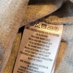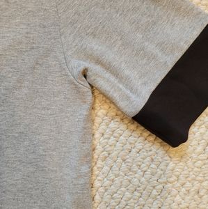 French Connection boxy loose shaped short cropped shirt. Light, heathered gray with black edges. The back has a split, see pictures. Material is thick and soft.