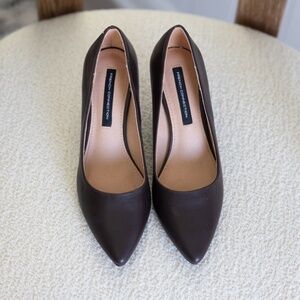 Brand new, only worn once French Connection pointed toe pumps. They are faux brown leather, and they are very comfortable. Size womens us 7