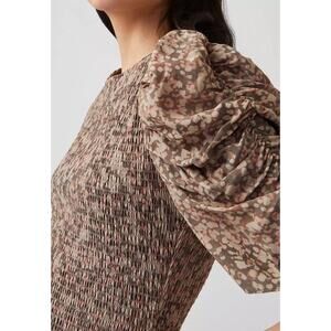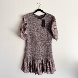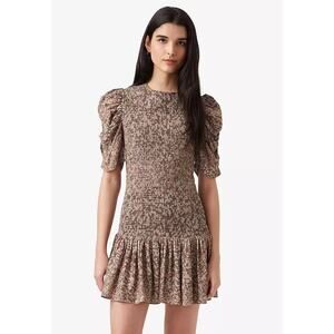 French Connection Brown Speckled Puff Sleeve Erika Drope Smock Mini Dress Large