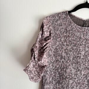 French Connection Brown Speckled Floral Erika Drope Smock Mini Dress Large