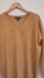 Chic V-neck sweater in a warm camel tone. Soft knit fabric. Ideal for layering. Long sweater.