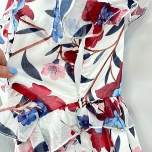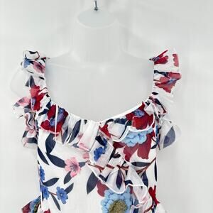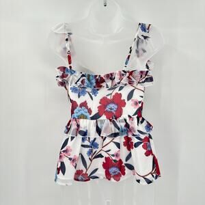 French Connection Cami Tank Top Women size 2 Floral Ruffles Garden Fairy Sparkle