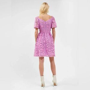 *NWT* French Connection mini dress. Style is Celilla Cabello. Color is Pink Violet. Dreamy floral lace and romantic flutter sleeves animate this delicate dress styled with a sweetheart neckline and scalloped trimming.