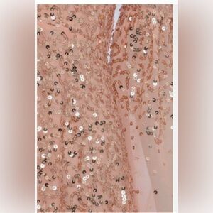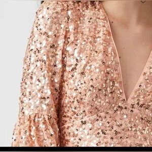 French Connection Cellienne Dusty Pink Sequin sheer flare sleeve Dress Size 4