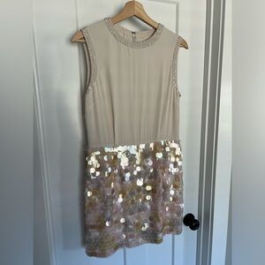 French Connection: Champagne Sequin Mini Dress: Size US 8