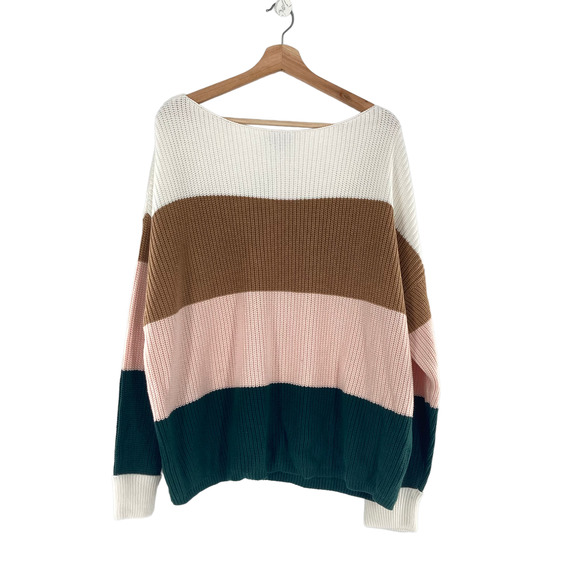 French Connection Color Block Stripe Green Pink Sweater Knit Pullover