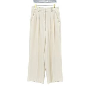French Connection Cream Wide Leg Pleated High Waist Trouser Career Pants