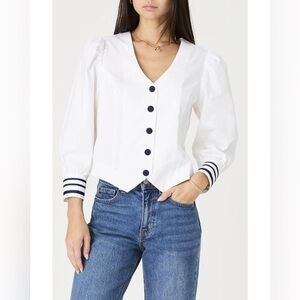 French connection denim top, button front, possible to button roll up sleeves size 2