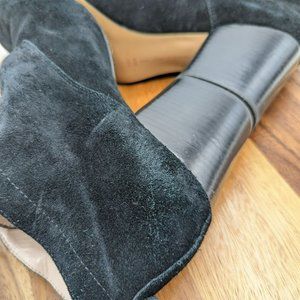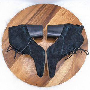French Connection Dinah Ankle Booties 10 41 Black Suede Lace Up Block Heel Goth