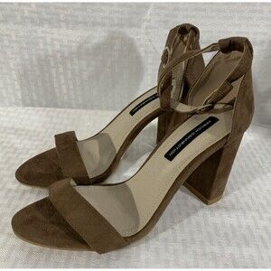 French Connection Dream Block Sandals Heels Womens 7 Brown Suede Ankle Strap