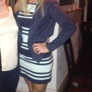 Light blue and navy striped body-con dress by French Connection. Worn only once!