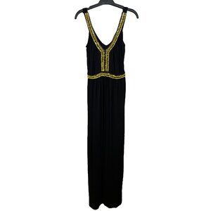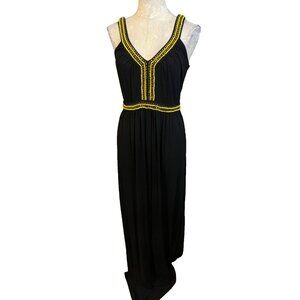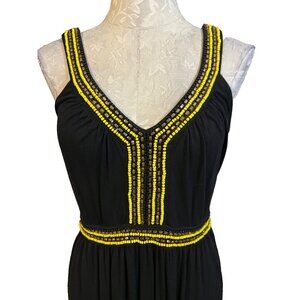 French Connection Dress Black Yellow 8 Beaded Neat Back Maxi NWT $198