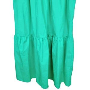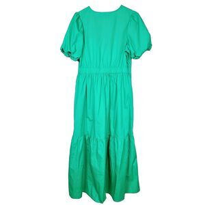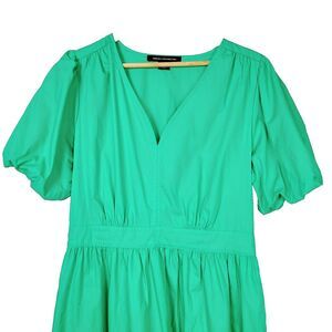 French Connection Dress L Kelly Green Puff Sleeve V-Neck A-Line Tiered Midi