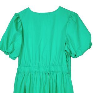 French connection Dress in Kelly Green, perfect for any occasion. This A-Line midi dress features puff sleeves and a V-neckline with a zip closure. Made of 100% cotton and machine washable, this dress is both comfortable and easy to care for.