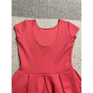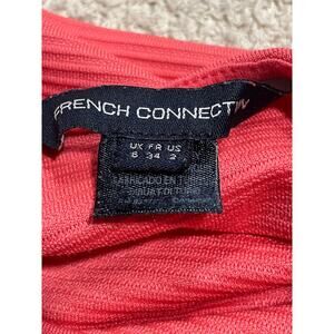 French Connection Dress Womens Size 2 Fit and Flare Pockets Pleated Cap Sleeve Stretch Ribbed Coral Pink 71BHF