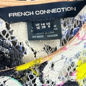 French Connection Dress Womens Size 6 Pink Green Black Floral Lace Sheath Lined