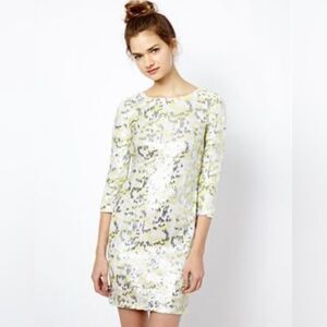 French Connection - Dress in Animal Wave Sequin Sz 4 White Multi