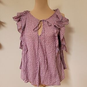 French Connection Elao Voile Cold Shoulder Top Size Small