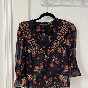 Excellent condition! Selling only because it doesn't fit me. Black with florals, slightly sheer, extremely chic with a cami or bralette underneath.