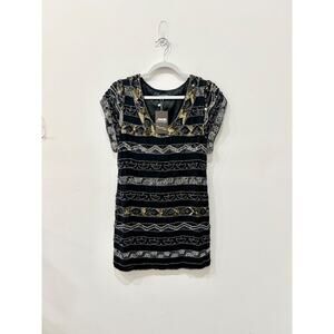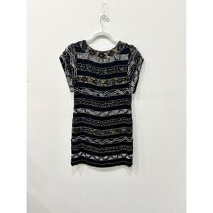 French Connection Embellished Beaded Sequin Mini Shift Dress Black Womens Size 0
