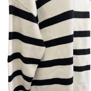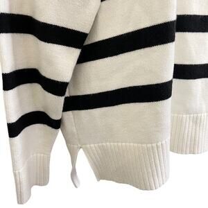 French Connection Essentials Womens Black Ivory Striped Long Sleeve Sweater sz L