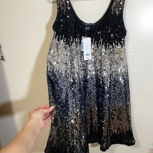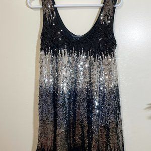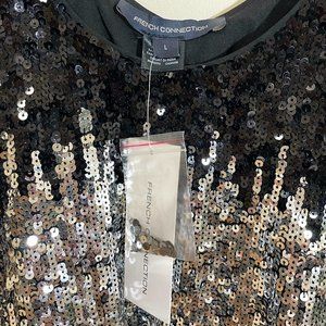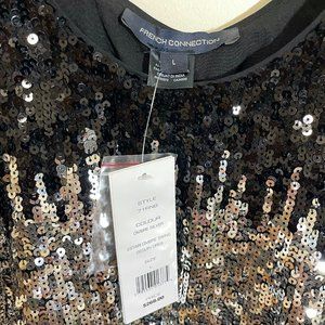 French Connection Estari ombre swing mini dress in silver & black Size L